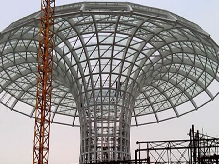 二、球形网架结构因其结构新颖,受力合理,自重轻、用钢量低等优点。如大型体育场馆球形哈尔滨螺栓球网架、公共场馆球形网架、电厂哈尔滨螺栓球网架、水泥工业球形网架、仓储物流球形网架、哈尔滨干煤棚工业球形网架、哈尔滨收费站哈尔滨加油站球形网架、展览中心、影剧院、商场、航站楼、候车厅、工厂哈尔滨车间、仓库、电视塔等球形螺栓球节点网架。国内球形网架结构主要分为:哈尔滨焊接球节点网架及螺栓球节点网架两种。螺栓球节点网架其构件工厂内加工量较大,现场安装便捷,适用于现场工期紧,哈尔滨施工条件、用电量受制约,网架形状复杂、哈尔滨杆件定位困难的异形结构。螺栓球节点球形网架系统基本由哈尔滨杆件、螺栓球、支撑支座等组成。按照节点形式可分为交叉哈尔滨桁架体系、四角锥体系、三角锥体系等。支撑方式多为固定支座支撑。对于大面积、大跨度及有特殊受力或伸缩要求的网架结构可采用橡胶支座、滑移支座、球铰支座等支撑形式,以满足结构自身的受力稳定、均衡,便于内力释放等设计要求。